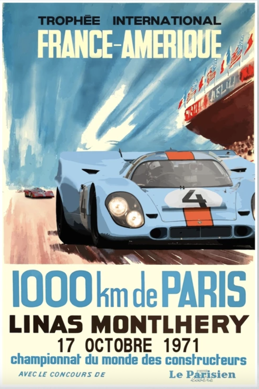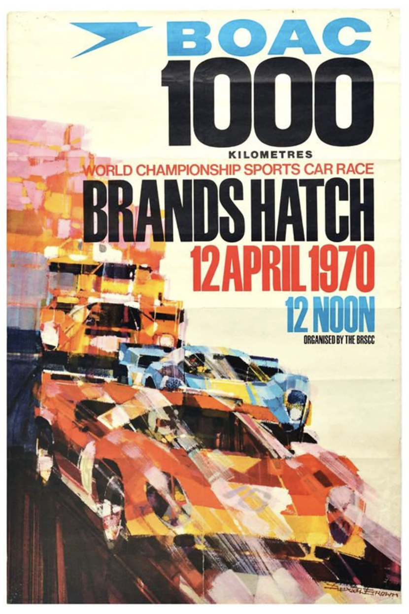 - Minimal color palettes — either duotone like Le Mans ‘79 or full-tilt high-contrast like BOAC 1000